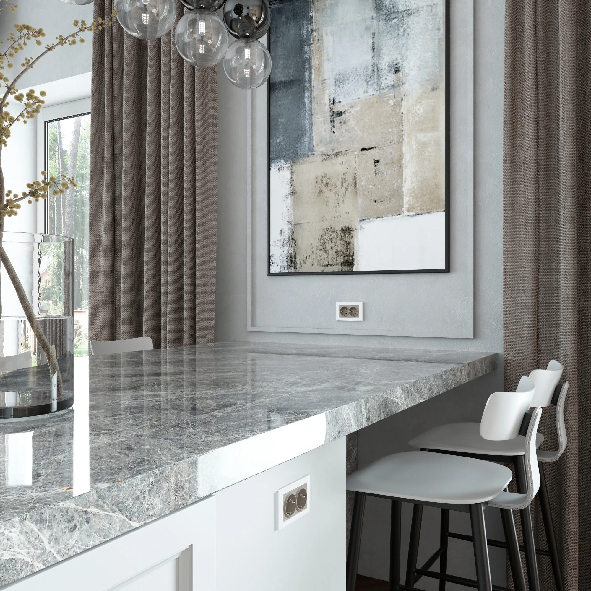 Лицевая панель выполнена из термостойкого поликарбоната — материала, устойчивого к нагреву, ударам и выцветанию. Благодаря лаконичному дизайну и дымчатовому цвету, розетка гармонично вписывается в любой интерьер.