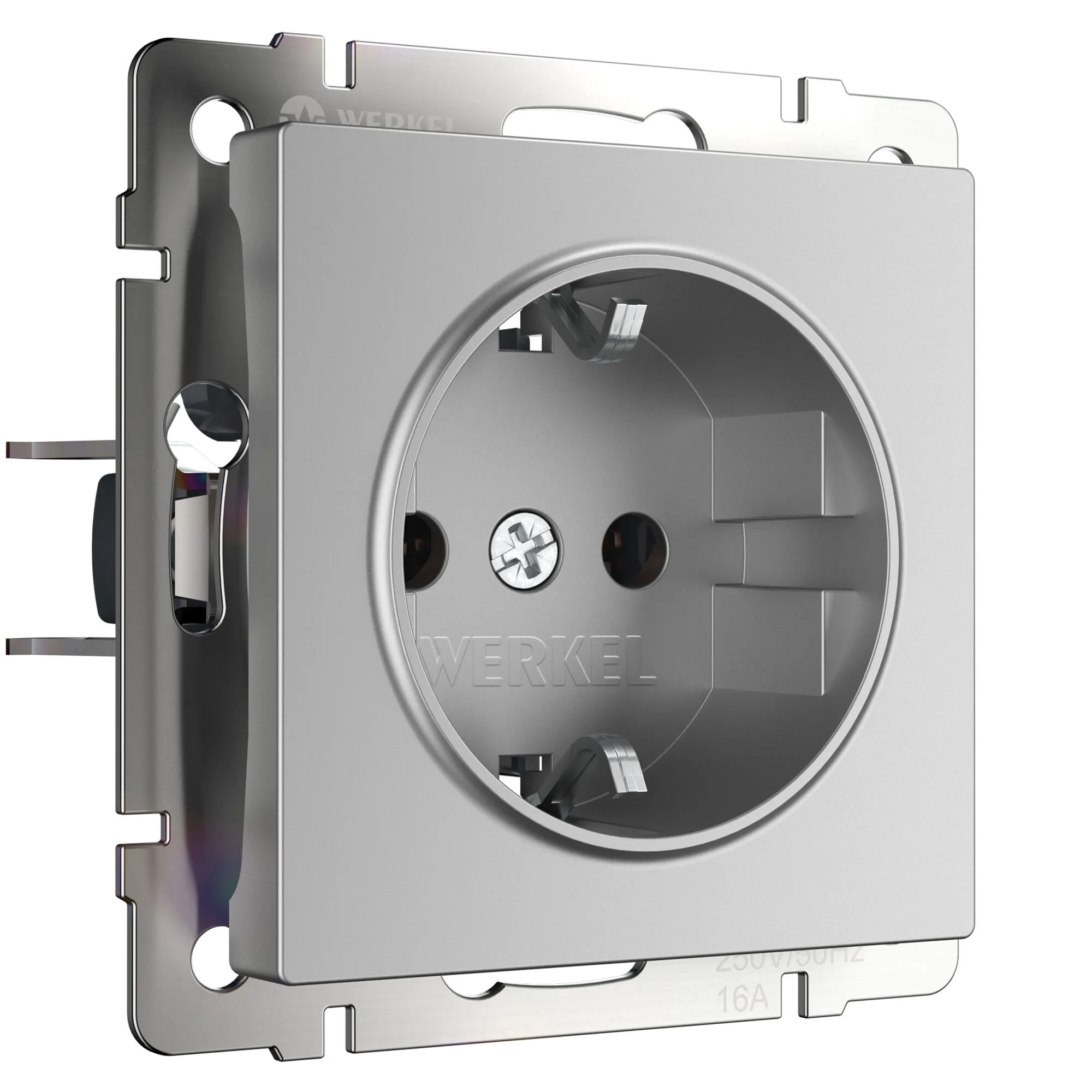 Розетка с заземлением безвинтовой зажим W1171306 серебряная 220В и 16А— необходимый элемент в любом помещении. Она предназначена для подключения к электрической сети различных приборов. Такие электроустановочные изделия используются в квартирах, частных домах, офисах и устанавливаются в удобных местах для комфортного использования.