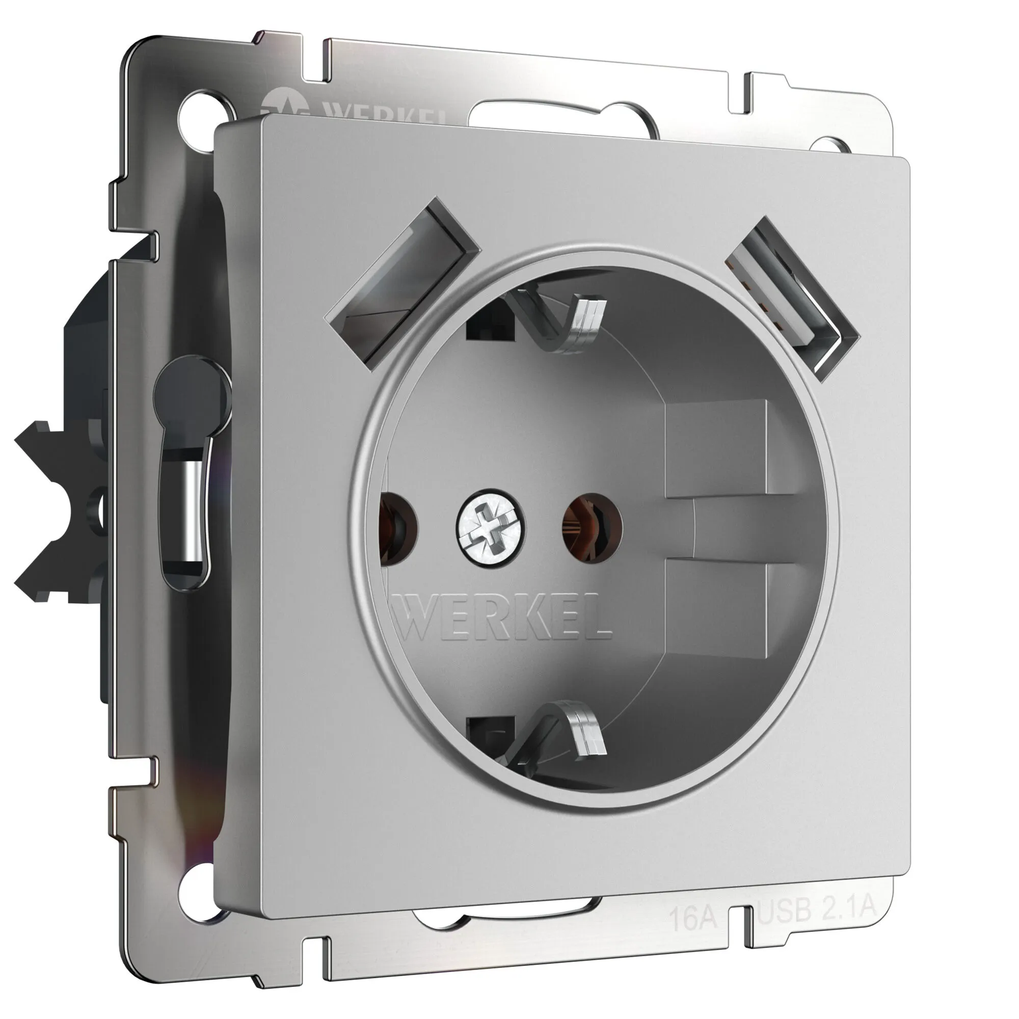 Розетка с заземлением и USBx2, встраиваемой серии Werkel — это надежное и практичное решение для тех, кто ценит безопасность, комфорт и стиль в своем доме.